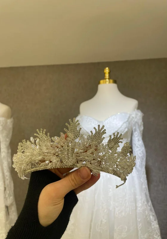 Altın tonları ve zarif kristal detaylarıyla tasarlanan bu gelin tacı, romantik ve ışıltılı bir görünüm sunar. Özel gününüzde saçınıza sofistike bir dokunuş katarak tüm dikkatleri üzerinize çekmenizi sağlar.