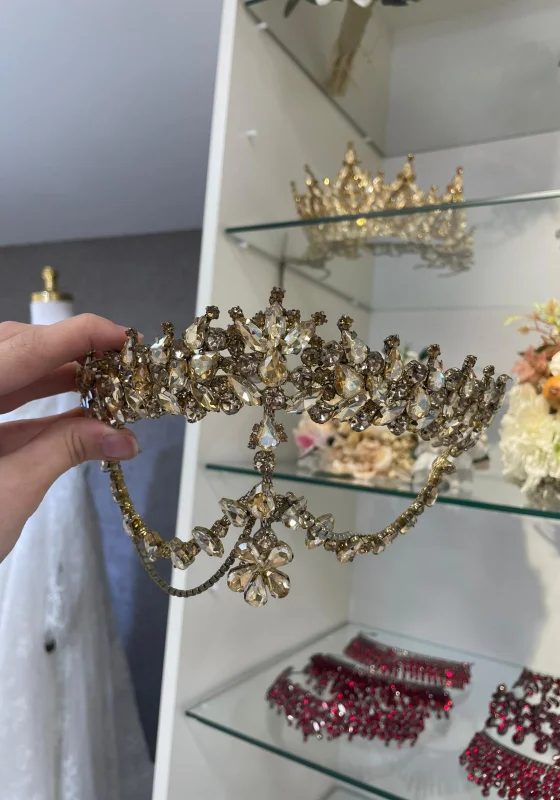 Şık tasarımı ve ışıltılı kristal taş detaylarıyla gelinliğinize zarif ve asil bir görünüm kazandırır. Düğün, nişan ve özel davetlerde stilinizi tamamlayan göz alıcı bir aksesuardır.