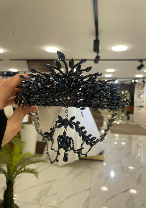 lacivert taş detayları ve gösterişli tasarımıyla güçlü ve sofistike bir görünüm sunar. Düğün, nişan ve özel davetlerde stilinize farklı ve etkileyici bir dokunuş katan şık bir aksesuardır.