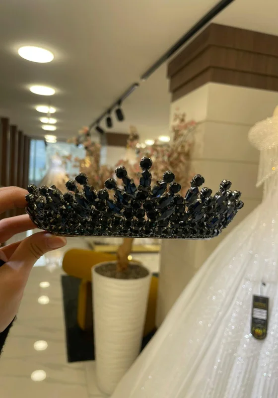 Zarif ve göz alıcı tasarıma sahip bu siyah taşlı taç, özel günlerde şıklığınızı tamamlamak için tasarlanmıştır. Parlak kristal detayları sayesinde ışığı yansıtarak etkileyici bir görünüm sunar. Düğün, nişan, kına, mezuniyet ve özel davetler için ideal bir aksesuardır.