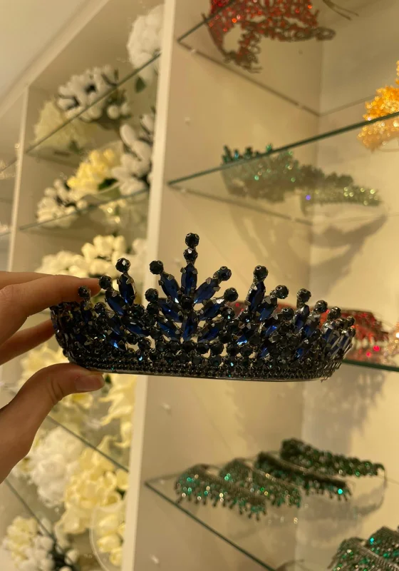 Lacivert kristal taşlarla tasarlanmış bu şık taç, modern ve dikkat çekici görünümüyle özel günler... Devamı