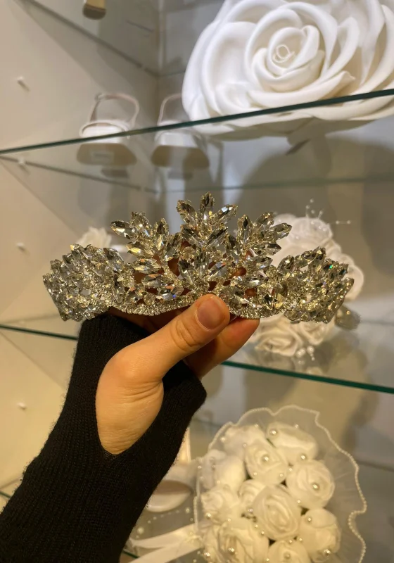 Parlak şeffaf kristal taşlarla tasarlanan bu zarif gelin tacı, sade ama göz alıcı bir şıklık sunar. Işıltılı taş dizilimi sayesinde düğün, nişan ve özel davetlerde gelinliğinizi tamamlayan zarif ve dikkat çekici bir aksesuardır.