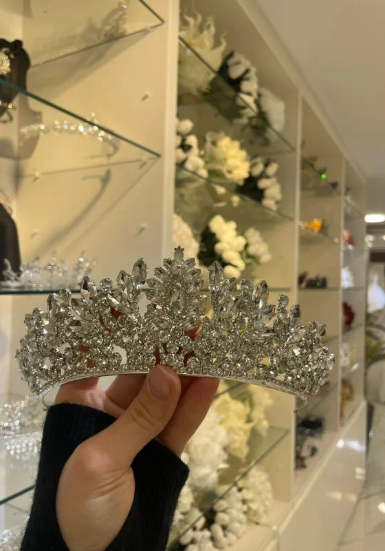 Parlak kristal taşlarla tasarlanmış bu zarif taç, ışıltılı ve gösterişli görünümüyle özel günlerde şıklığınızı tamamlar. Detaylı taş işçiliği ve sağlam metal yapısı sayesinde hem estetik hem de konforlu kullanım sunar. Düğün, nişan ve özel davetler için ideal bir aksesuardır.